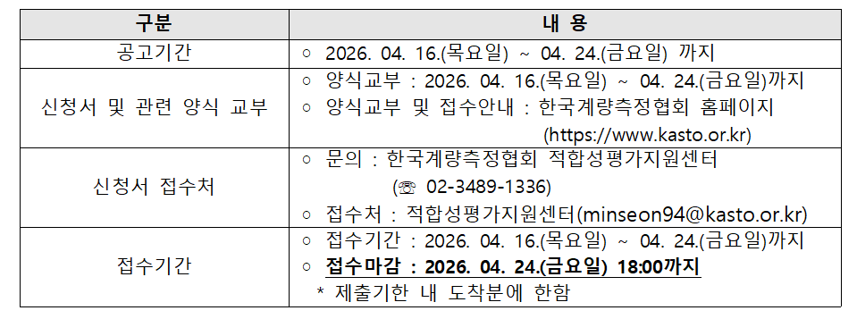 2026년도 「숙련도시험 개발·운영」 사업 대상 과제를 다음과 같이 공고하오니 해당 과제를 수행하고자 하는 자는 신청 요령에 따라 신청하여 주시기 바랍니다.
