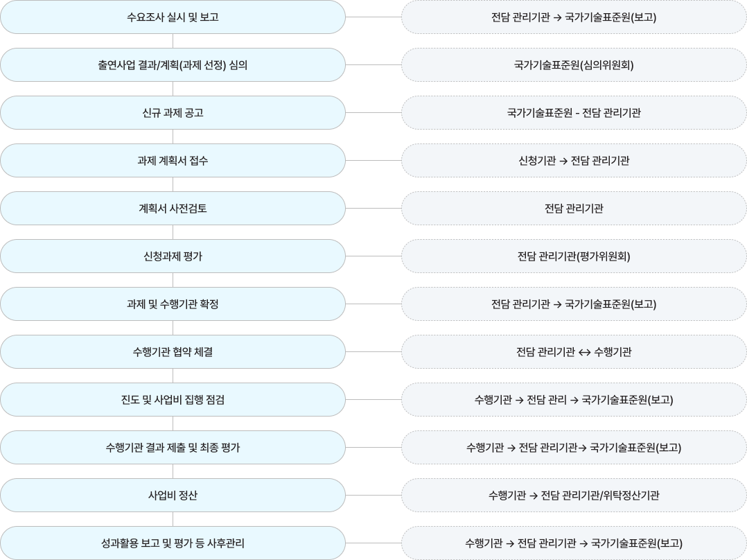 사전 조사 후 대상과제 발굴 후 국가기술표준원 사업심의위원회를 통해 대상 과제 선정